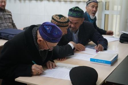 Білім алуға байланысты Пайғамбарымыздың хадистері де жетерлік. «Тал бесіктен жер бесікке дейін ілім үйренуге тырысыңдар!» (Шира) деген хадиске амал еткен ақсақалдар «Құран әліпесі», «Пайғамбар өмірбаяны» (Сияр), «Хадис», «Ғылмыхал», «Иман негіздері» дәрістері бойынша білім алып шықты. Сауат ашу курсын тамамдаған 20-ға жуық ақсақал «Ислам негідері және иман шарттары» дәрістерінен емтихандырын сәтті тапсырды.