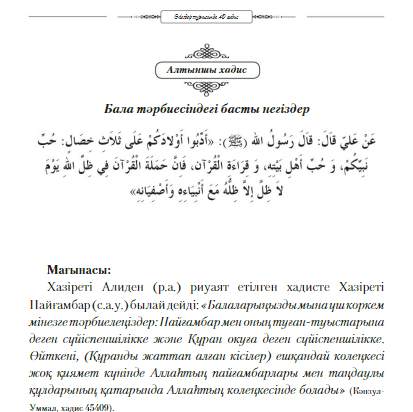 (Дәрісте айтылған хадистің жазбаша нұсқасысы төменде көрсетілген.)