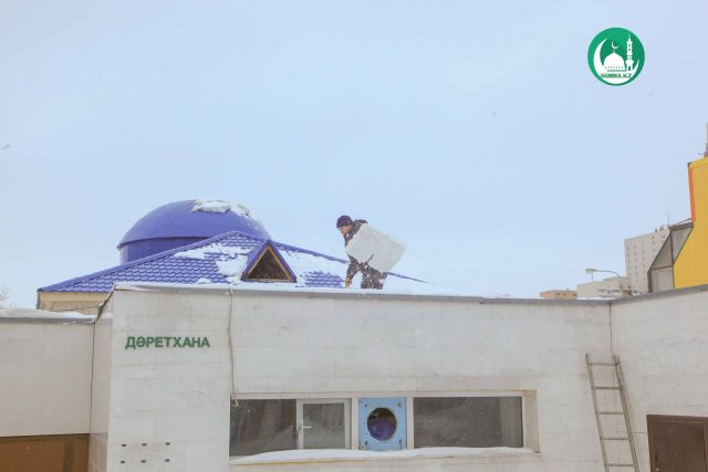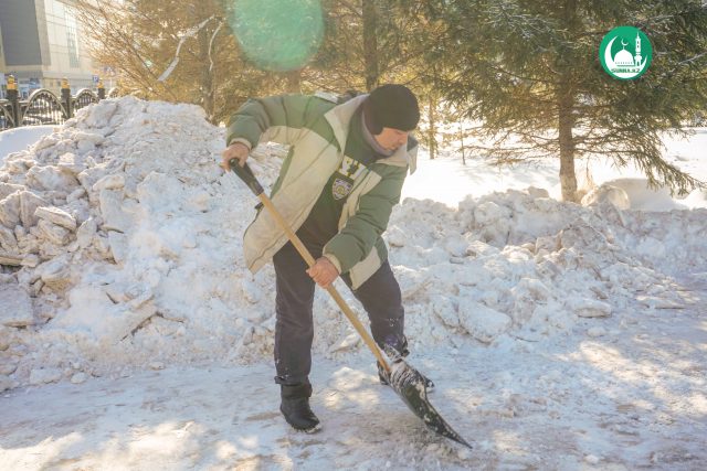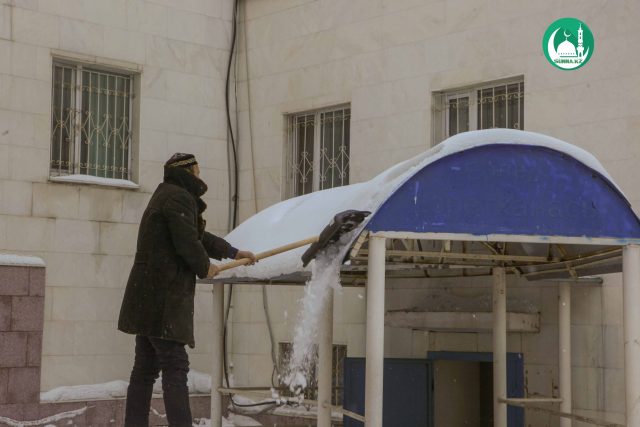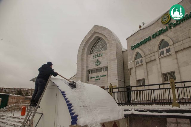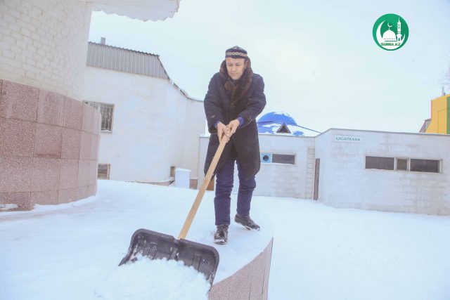 Құлшылық ғибадатына келуші жамағатқа ыңғайсыздық тудырмас үшін қыс бойы мешіт ауласы қардан және шатырда қатқан мұздардан дер кезінде тазарту жүргізілді. Алдағы уақытта қыс бойы мешіт ауласы мен абаттандыру алаңдары қардан тазарту жұмыстары үздіксіз жалғаса бермек. Әрине, мұның бәрі ғибадат жасаушыларға құлайсыздық тудырмау. Шатырлардағы қар жібігенде әрі бері өткен адамдарға яки машиналарға түсу мүмкін, сондықтан мұндай шаралар кез келген мекемелерге де жасалуы тиісті жұмыс. Осындай иігі істерге қашанда мешіттеріміз бастама жасауы ләзім.