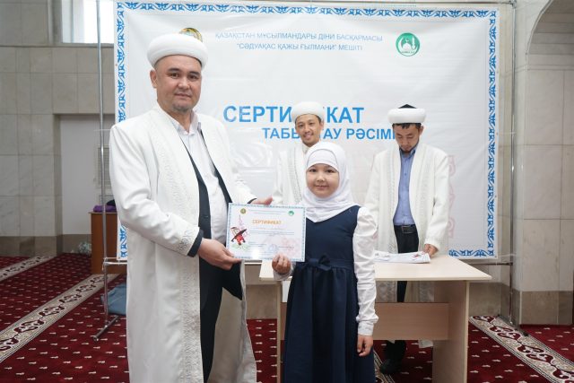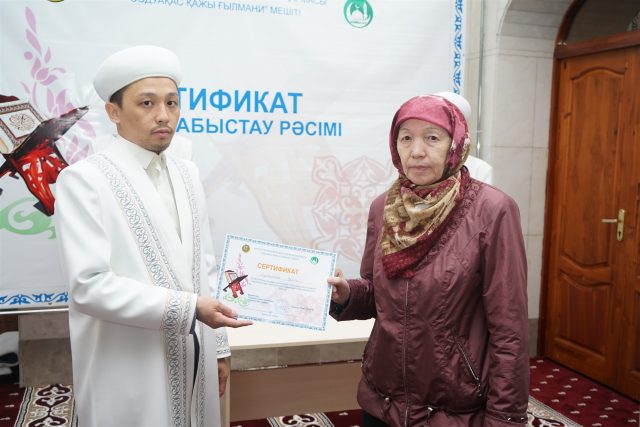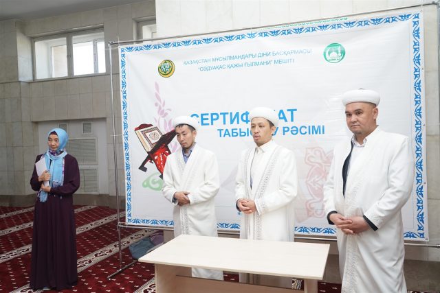 Бүгінгі салтанатты шара барысында «Сәдуақас қажы Ғылмани» мешітінің 33 әйел шәкірттері Бас имам Нұрлан Рамазанов және  ұстаз Айгүл Көксегенқызының қолынан сертификат алды. Білім жолындағы ізденістің ешқашан кеш болмайтын дәлелдеген апа-әжелерімізден бастап,  оң-солын енді ажырата бастаған қарындастарымыз үшін бүгінгі күннің орны ерекше болды.