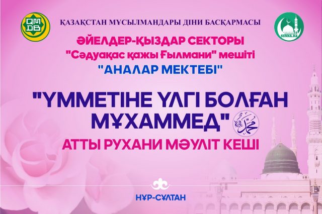 Сойндай-ақ, бүгін ҚМДБ «Әйел-қыздар» секторы «Аналар мектебі» клубының ұйымдастыруымен әйел жамағатына арналған «Үмметіне үлгі болған Мұхаммед (с.ғ.с.)» атты Мәуліт мерекесі ұлықталды.