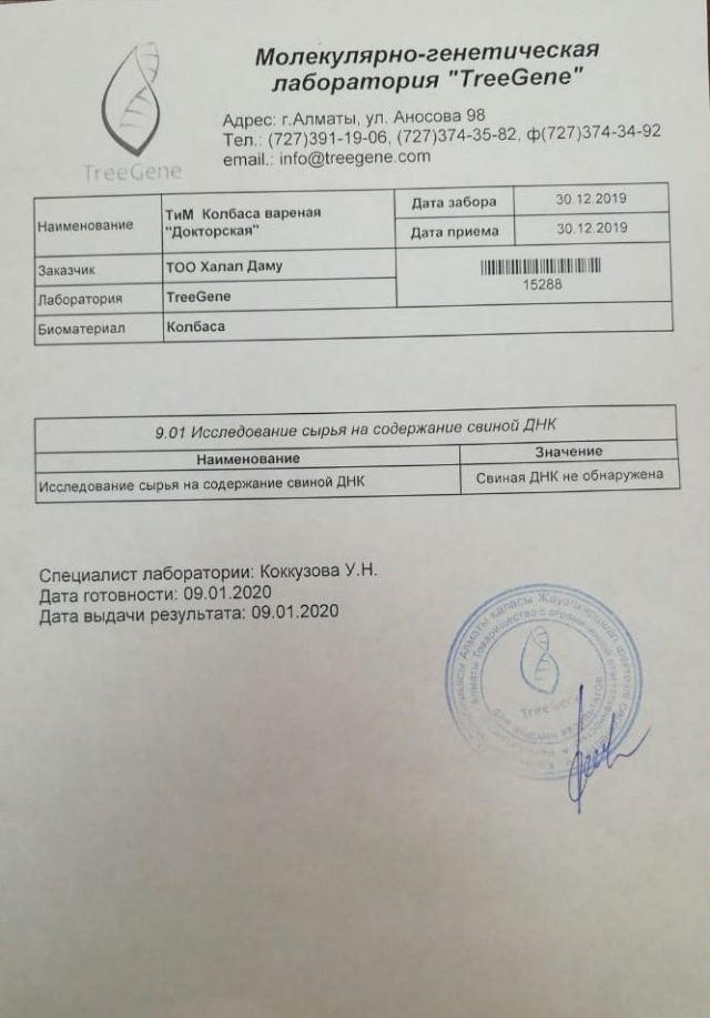 Оның айтуынша, халал шұжықтың дәмін, түсін, түрін өзгертетін қоспалар, яғни, ингредиенттерде шошқа ДНК-сының бар-жоғын қандай жағдай болмасын зертханада анықтауға болады.