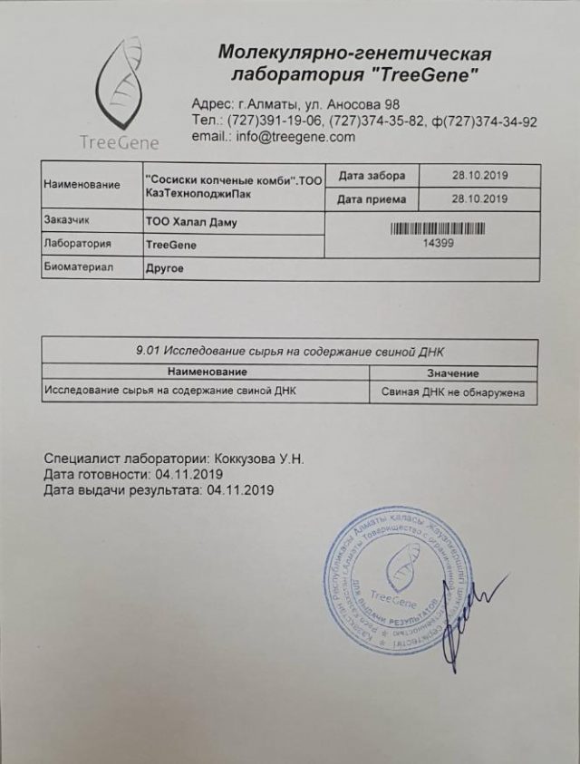Осы орайда Алматы қаласындағы «TreeGene» молекулярлық-генетикалық зертханасының ақпараттық анықтамасын назарларыңызға ұсынамыз.