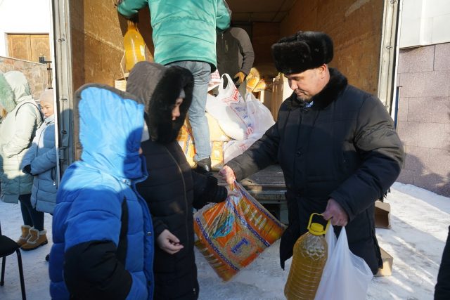 Шара аясында көп балалы, әлеуметтік жағдайы төмен отбасыларды қамтыған 107 отбасына күріш, сумай, макарон сияқты азық-түлік таратылды.