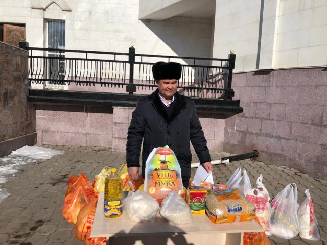 Көлемді шараға наиб имам Әділ Агитаев қатысып, хақ діндегі қайырымдылықтың орыны жайлы тоқталып, азық-түліктерді өз қолымен табыстады.