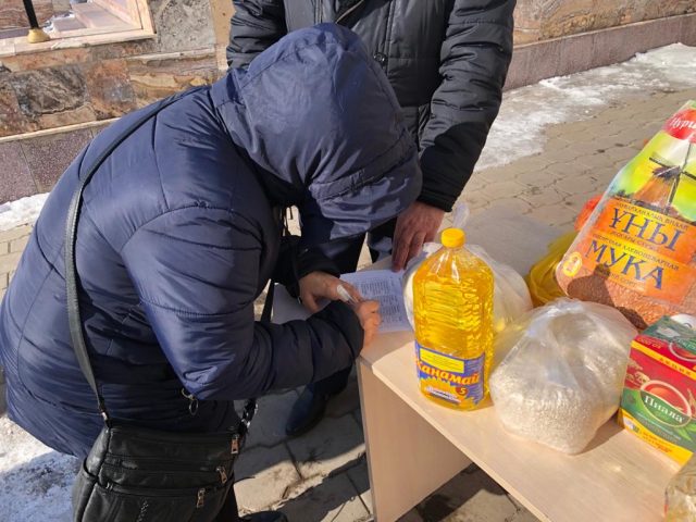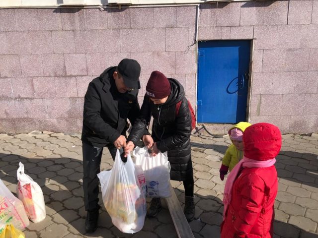 Шара аясында көп балалы, әлеуметтік жағдайы төмен отбасыларды қамтыған 20 отбасына күріш, сумай, макарон сияқты азық-түлік таратылды.