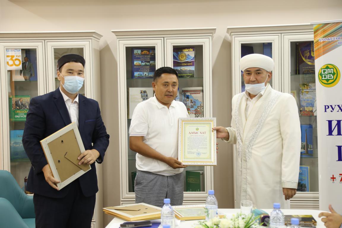 Бас мүфтидің марапаты Біржан Байтуов, Құрмет Талапқазы, Қажымұхан Абзалов, Бекмұрат Анарбаев, Сайлаубай Мейірбеков, Мұратбек Солтанбай, Мақсат Дәулетұлы, Нұрлыбай Татаев, Арыстан Оразалыұлы, Бекжан Орманәліұлы, Нұржан Жақсылық, Марат Ергешұлына табысталды. Басқосу аясында қатысушылар кітапхананың «Мүфтият» имандылық бұрышы мен шағын мұражайын тамашалады.