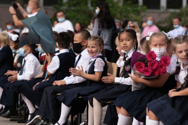 Сабақтан кейін үйлеріне қайтып бара жатқан оқушылар, 2021 жылдың 7 қыркүйегі, Нұр-Сұлтан.