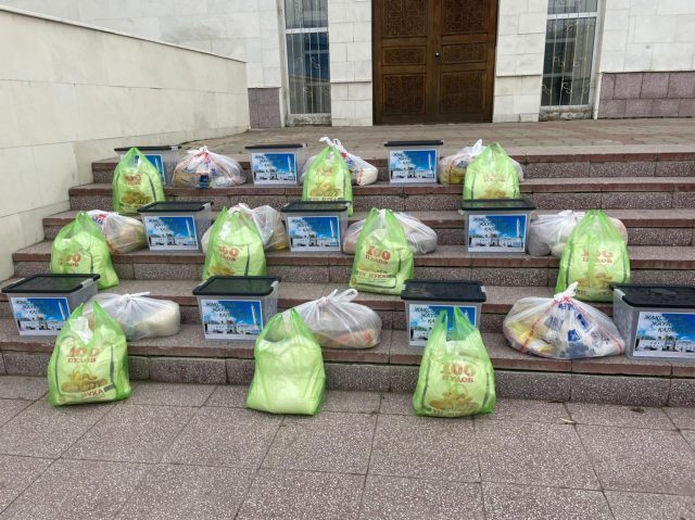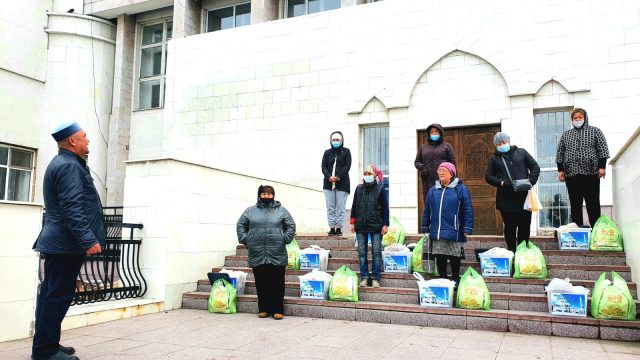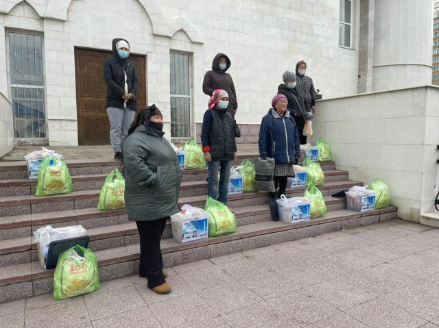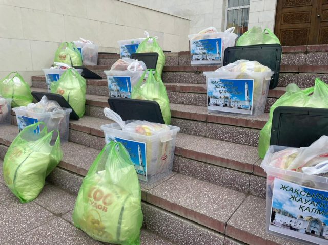Бүгін де сол игі шара жалғасын тапты. «Сәдуақас қажы Ғылмани» мешітінде қайырымдылық шарасы өтті. Карантиндік талаптарды сақтай отырып, әлеуметтік аз қамтылған 10 отбасыға азық-түлік салынған пакеттер таратылды.