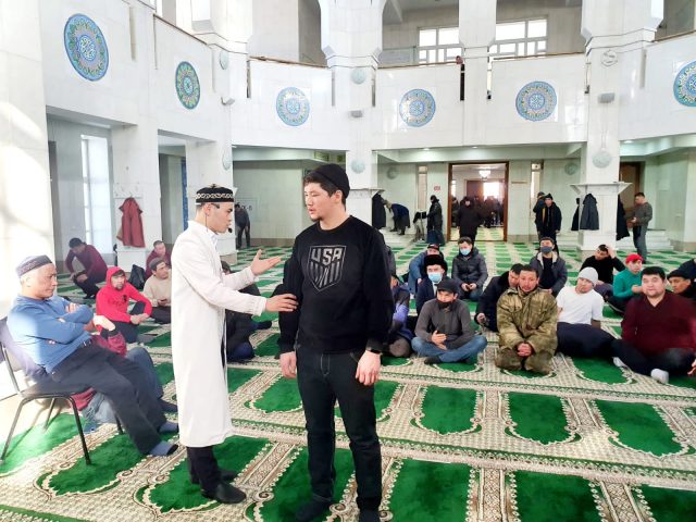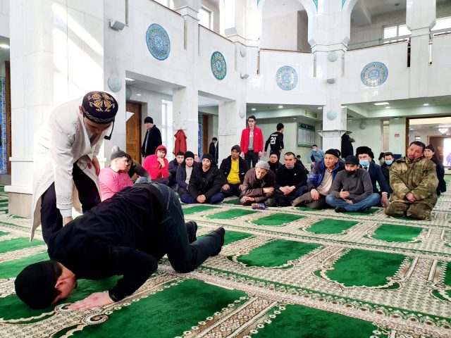 Кезекті жұма намазынан кейін мешіт қызметкері жамағатқа бесін намазының қалай оқылатыны жайында практикалық дәріс жүргізді.