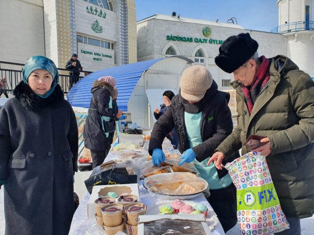 Мешіт шәкірттері және Аналар мектебінің мүшелерінен құралған еріктілердің атсалысуымен қайырымдылық жәрмеңкесінде тағамдар, тәттілер, тоқаштар сатылымға шығарды.
