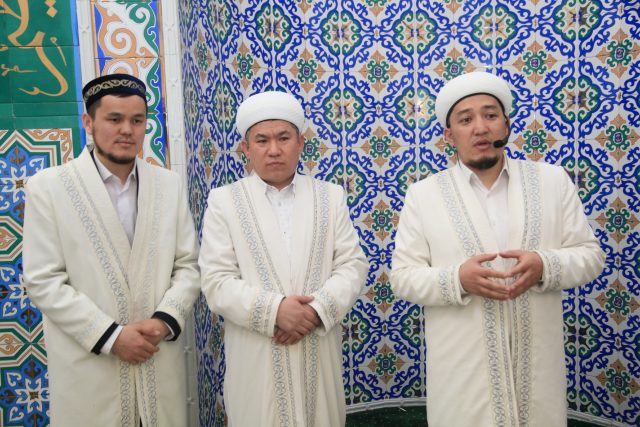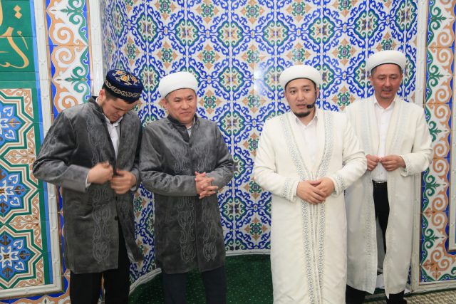 «Сәдуақас қажы Ғылмани» мешітінің бас имамы Руслан Нақыпбекұлы Санху Закир мен Оңғар Хайриддинов қатарлы әріптестерінің жаңа қызметтеріне сәттілік пен абырой тілеп, қазақи дәстүр бойынша иықтарына шапан жапты.