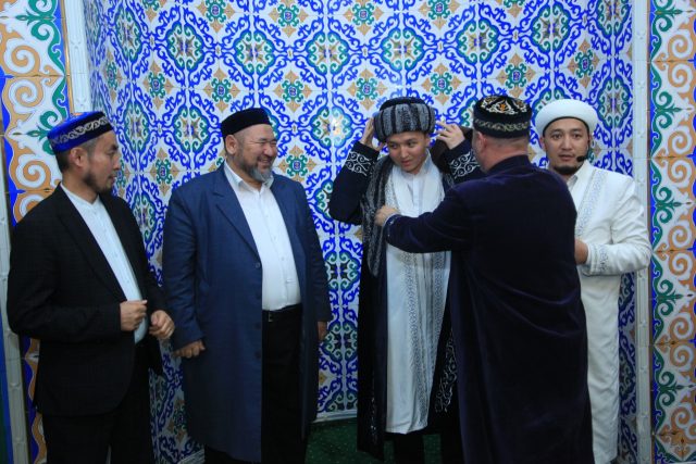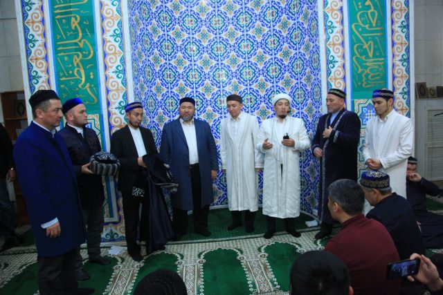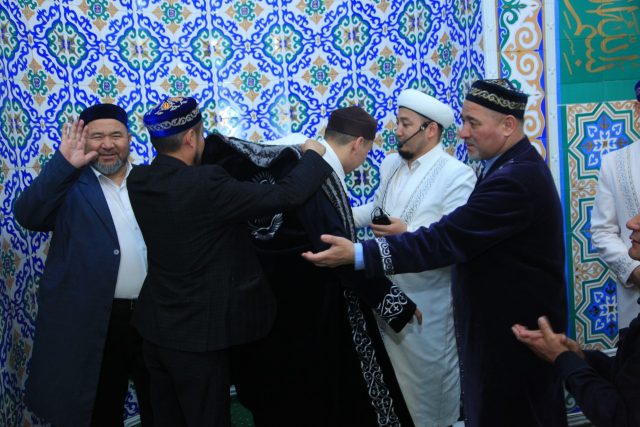 Өз кезегінде Шоқан қари мешіт ұжымы мен жамағаттың ықыласына дән ризашылығын жеткізіп, иығына жабылған шапанды ұстаздарының бірі Сансызбай қажы Құрбанұлына кигізіп, сыйластықтың өнегесін көрсетті.