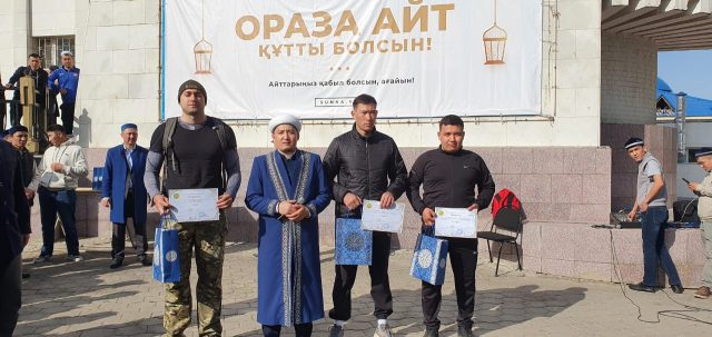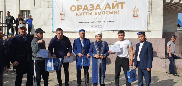 Айт намазына жиналған жамағат арасында қол күресі, ләңгі тебу, гір көтеру, арқан тарту, қой көтеру сияқты аталымдар бойынша ұлттық ойындар ойнатылып, жеңімпаздарға мешіт тарапынан бағалы сыйлық берілді.
