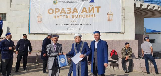 Мешіт ауласындағы мерекелік шараға «Сәдуақас қажы Ғылмани» мешітінің бас имамы Руслан Байзақов қатысып, жамағатты Ораза айт мерекесімен құттықтады.