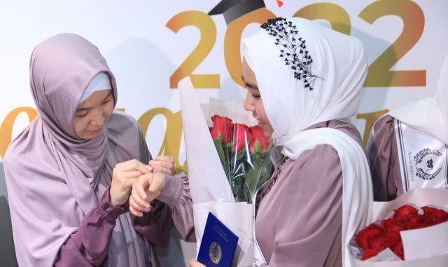 Салтанатты рәсімге ҚМДБ Төрағасының орынбасары, наиб мүфти Ершат Ағыбайұлы, ҚМДБ Әйел-қыздар секторының меңгерушісі Динара Құтқожақызы, ҚМДБ Діни білім және кадр даярлау бөлімінің маманы Гүлбану Қайдарқызы арнайы қатысып, бітіруші түлектерді құттықтап, жылы лебізін арнады.