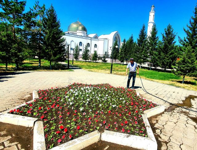 Бүгін «Сәдуақас қажы Ғылмани» мешітінің ауласы абаттандырылып, гүлзарға гүл көшеттері отырғызылды.