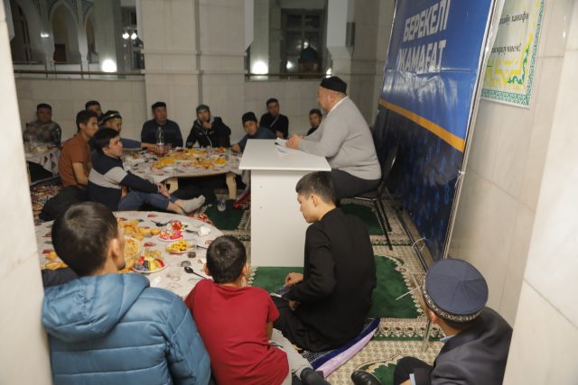 «Сәдуақас қажы Ғылмани» мешітінде жамағатқа әдеттегідей бейсенбілік дастархан жайылып, ауызашар берілді. Берекелі дастарханға арнайы қонақ ретінде шақырылған ҚМДБ Төрағасының орынбасары, наиб мүфти, Шариғат және пәтуа бөлімінің меңгерушісі Сансызбай Құрбанұлы жамағатқа насихат айтты.
