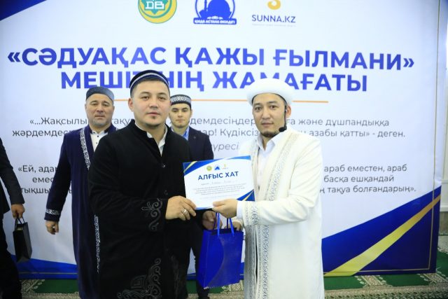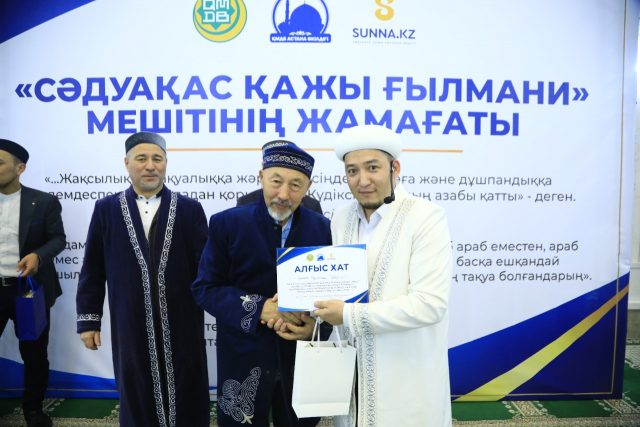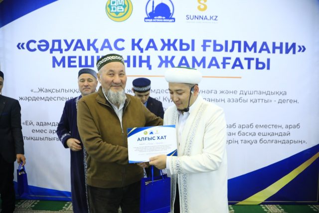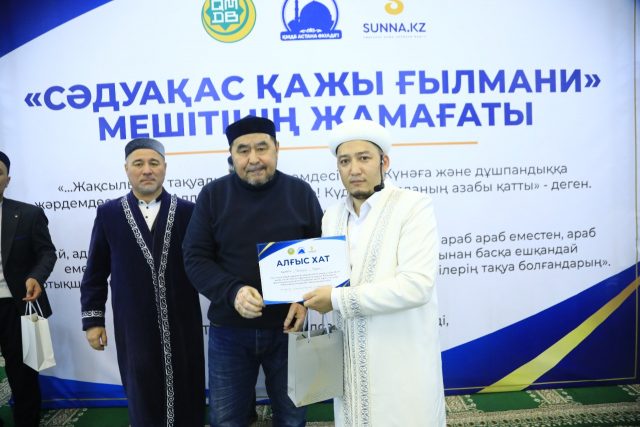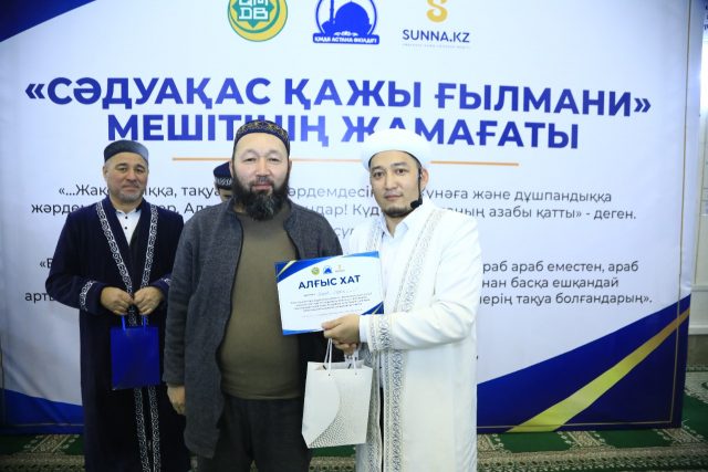 Сондай-ақ, ізгі шара барысында мешіттің бас имамы Руслан Нақыпбекұлы мешіт ақсақалдары мен мешіт қабырғасында өтетін шараларға атсалысып жүрген бірқатар жамағатқа арнайы Алғыс хат пен естелік сыйлықтарын табыстады.