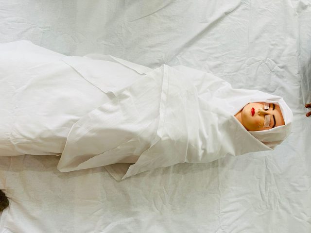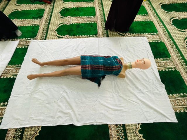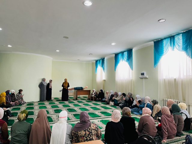 Осыған орай, «Сәдуақас қажы Ғылмани» мешітінде әйелдер жамағатына арналған практикалық сабақ өткізілді. Мешіт ұстазы Айгүл Көксегенқызы мәйітті кебендеу, жуу, орау рәсімдерін практикалық түрде көрсетіп, жеке-жеке тоқталып мәнісін түсіндіріп өтті. Өмір мен өлімнің мәні, ысырапшылдық турасында насихат айтып, шариғатқа сай кебінді пішу, әсіресе әйел адамның кебін киімдері, оның атаулары мен өлшемі тұрғысында түсіндіріп, мүрдені кебіндеудің ретін баяндады. Сабақ соңында қатысушылардың сұрақтарына жауап берілді.