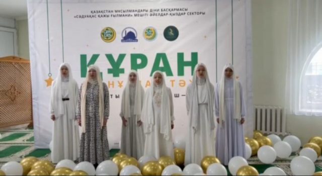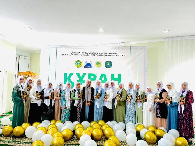 Мешіттің Әйелдер-қыздар секторының меңгерушісі Айгүл Көксегеннің алдынан білім алған 25 шәкірт Құран әліппесі мен тәжуид ілімін тәмамдап, Құранға түсті. Осыған орай, мешітте арнайы рухани шара өтті.