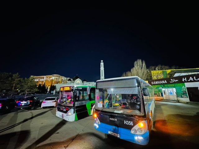 Тарауық намазына жиналған жамағатты жеткізуге арнайы автобустар шығарылды.