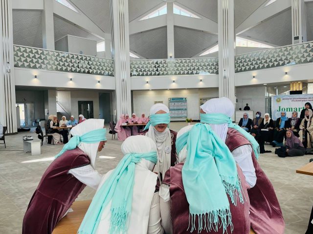 ҚМДБ Әйел қыздар секторына қарасты «Сәдуақас қажы Ғылмани» мешітінің әйел жамағатынан құрылған Аналар мектебі және «Рақым қызы Райса ана» мешітінің әйел жамағатынан құрылған Райса ана қыз келіншектер мектебінің ұйымдастыруымен «Рамазан айы және әйелдерге тән мәселелер» кітабы бойынша өткен сайысқа 6 команда қатысты.