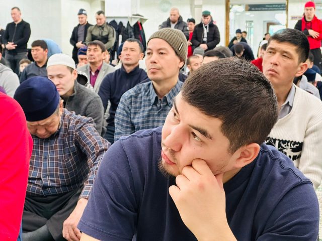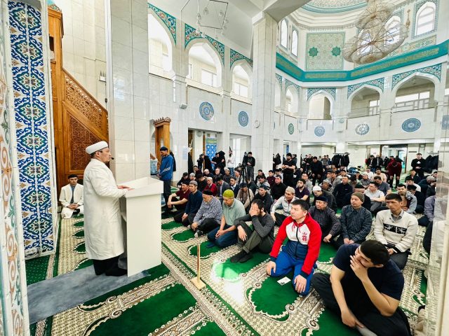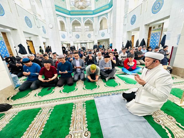 Қасиетті Қадір түніне орай, Бас имам Руслан Байзақовтың қатысуымен бесін намазында арнайы хатым дұғасы жасалды.