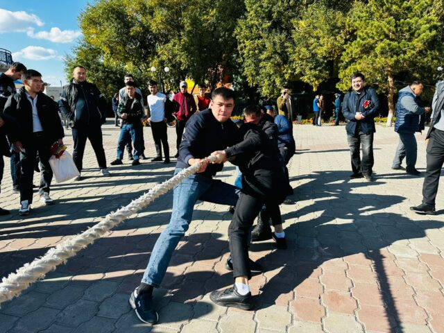 Жарыста жиналған азаматтар ерікті түрде арқан тартыс, қой көтеру қатарлы ұлттық спорт түрлерінен сайысқа түсті.