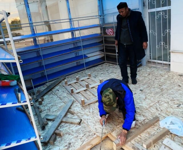 Әуелі, мешіт ішіндегі жұмыстар. Яғни, кіреберіске күрделі өзгерістер енгізіліп, кейбір бөлмелерге жөндеу жұмыстары жүргізілді.