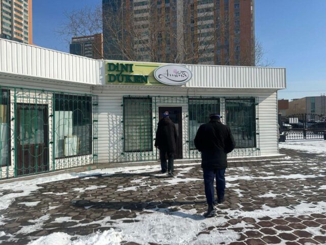 Кезекті шара аясында мешіт имамдары Ниязов Ержан мен Ерасыл Жайыров құлшылық ордасының маңайында орналасқа діни бұйымдар сататын дүкендердегі кітаптарды тағы бір мәрте тексеріп шықты.