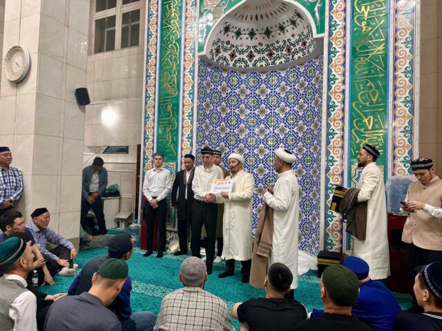 Көпшіліктің ыстық ықыласына бөленген қариларымызға қазақы дәстүрге сай шапан жабылып, алғыс хат пен естелік сыйлықтар табысталды. Мешіт ақсақалдары қариларға ақ батасын беріп, ризашылықтарын білдірді.