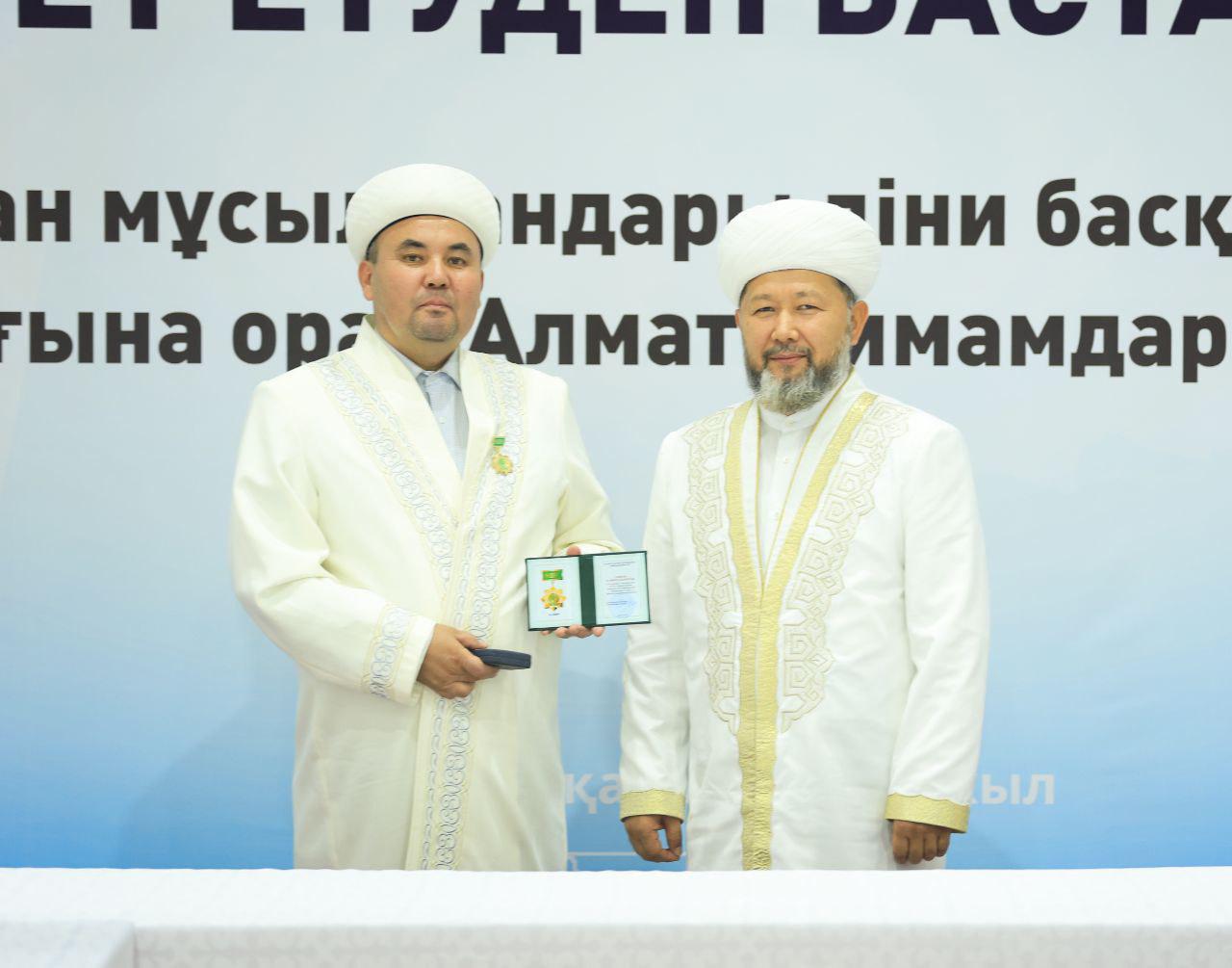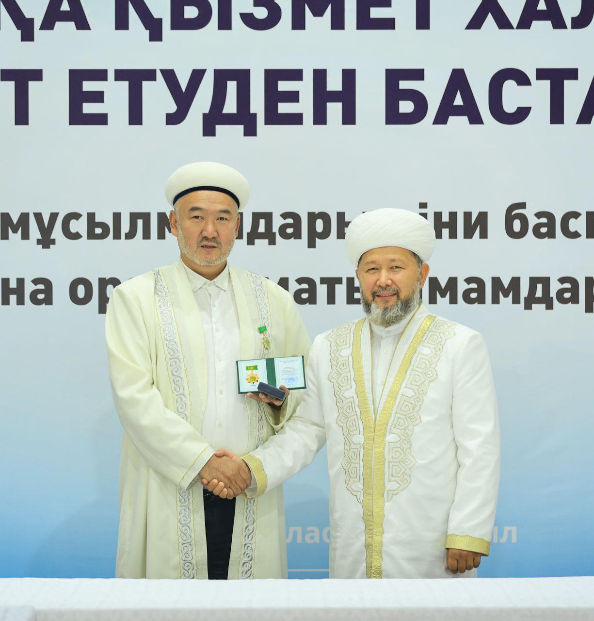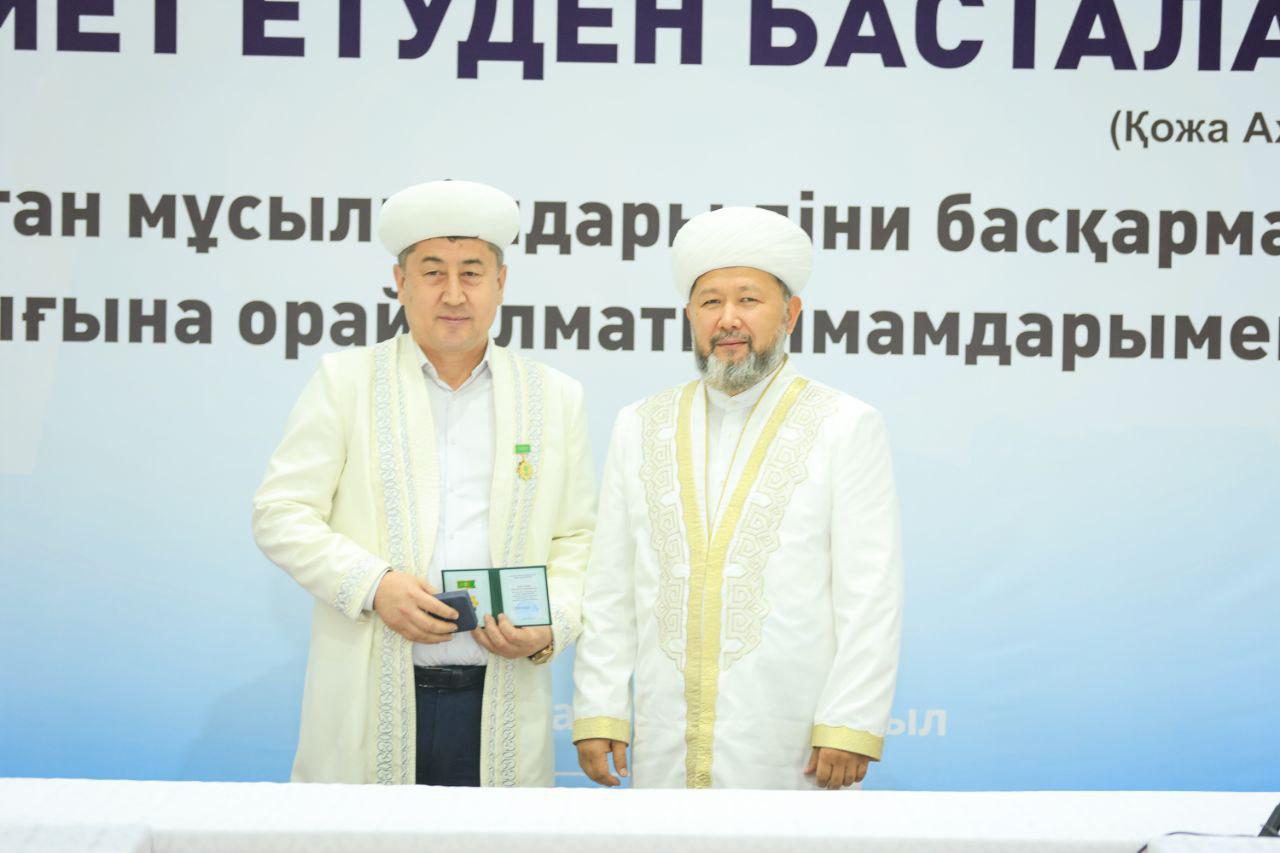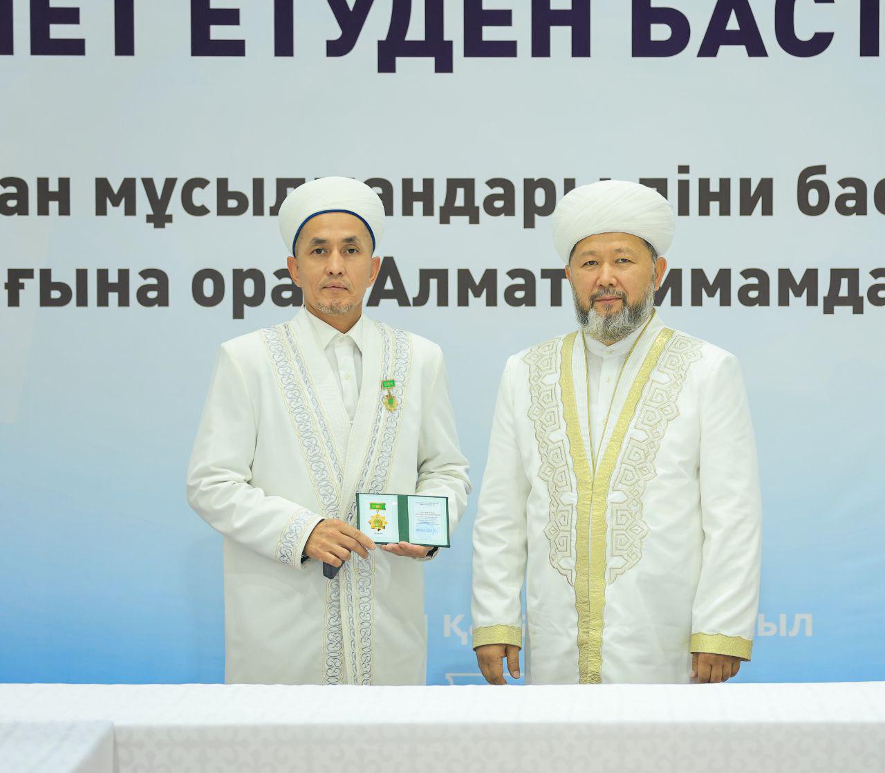 Аталмыш марапат Қазақстан мұсылмандары діни басқармасының негізі қаланғанына 35 жыл толуына орай, ел ішінде дін мен дәстүр сабақтастығын дәріптеп, халыққа діни-ағарту бағытында аянбай қызмет етіп жүрген имам-молдаларға көрсетілген құрметтің белгісі ретінде табысталды.