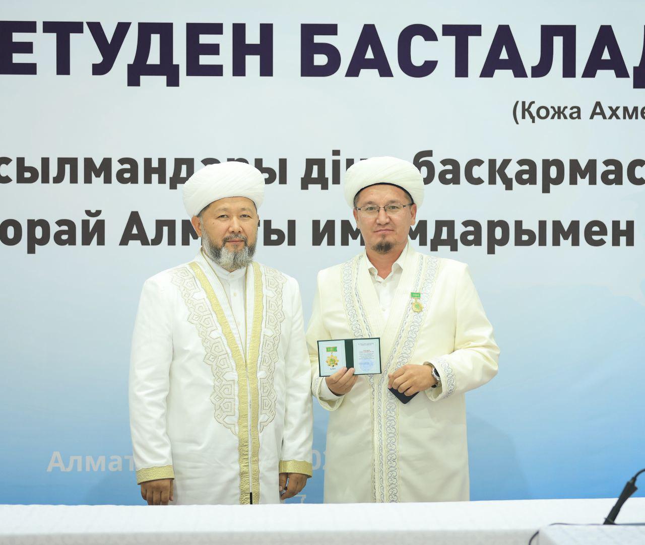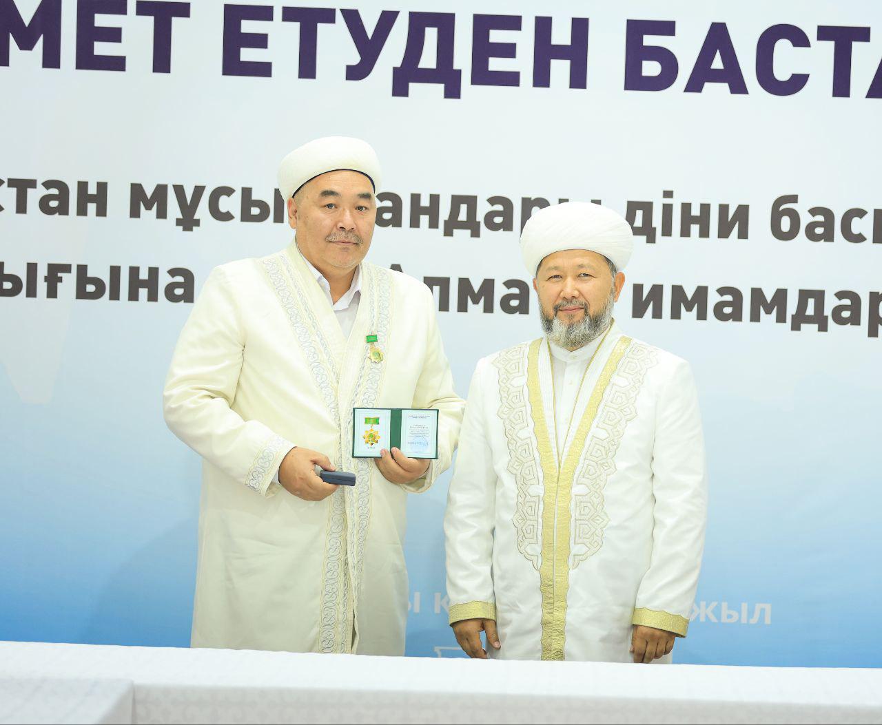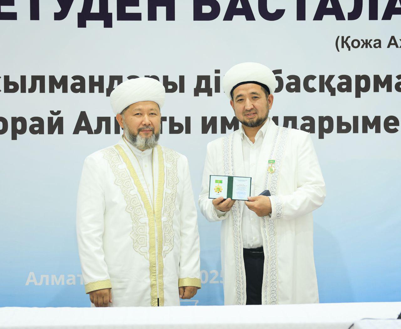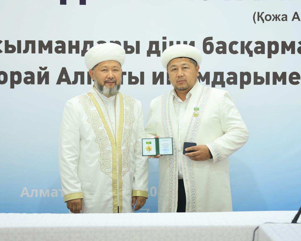 Аталмыш марапат Қазақстан мұсылмандары діни басқармасының негізі қаланғанына 35 жыл толуына орай, ел ішінде дін мен дәстүр сабақтастығын дәріптеп, халыққа діни-ағарту бағытында аянбай қызмет етіп жүрген имам-молдаларға көрсетілген құрметтің белгісі ретінде табысталды.