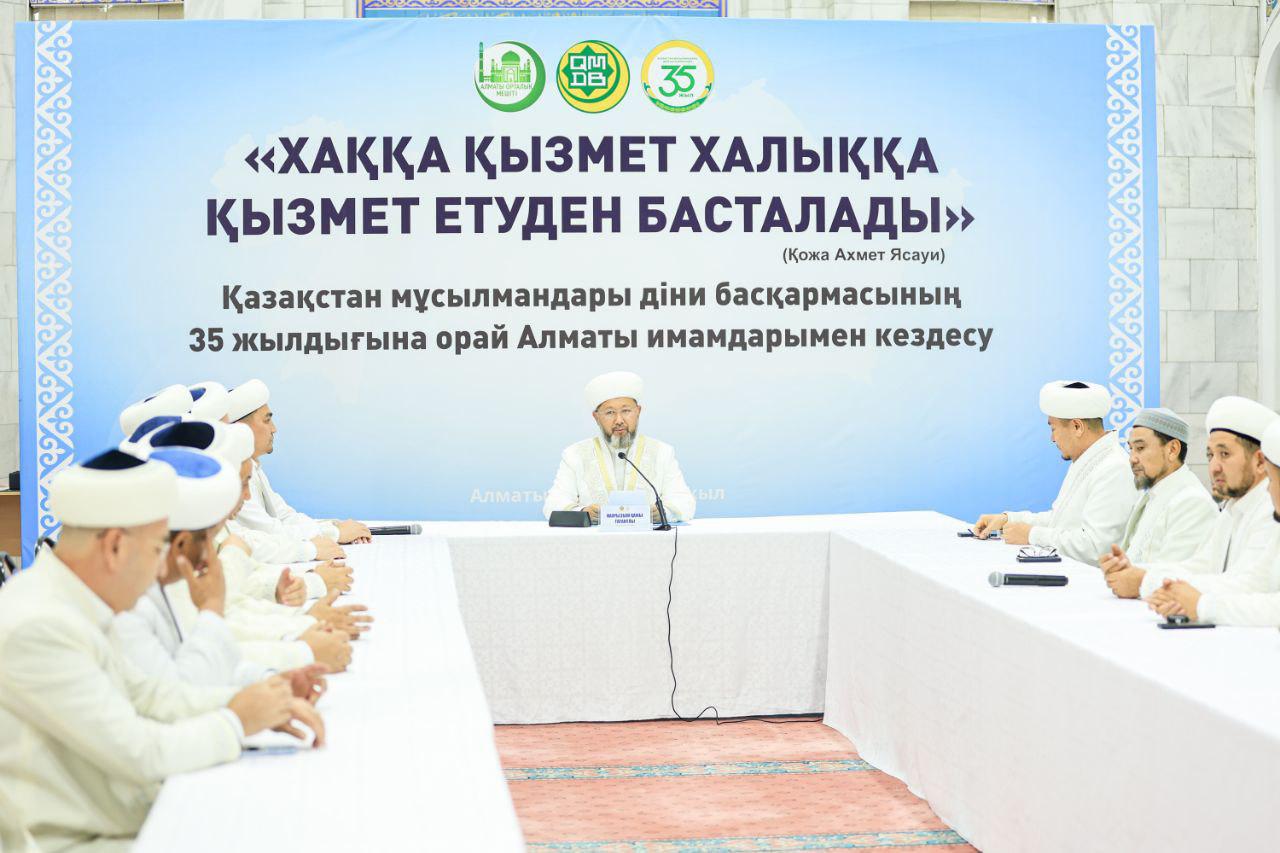 Бас мүфти Наурызбай қажы Тағанұлының Алматы қаласына іс-сапары аясында бірқатар дін қызметкерлері ҚМДБ-ның 35 жылдық мерейтойлық медалімен марапатталды.