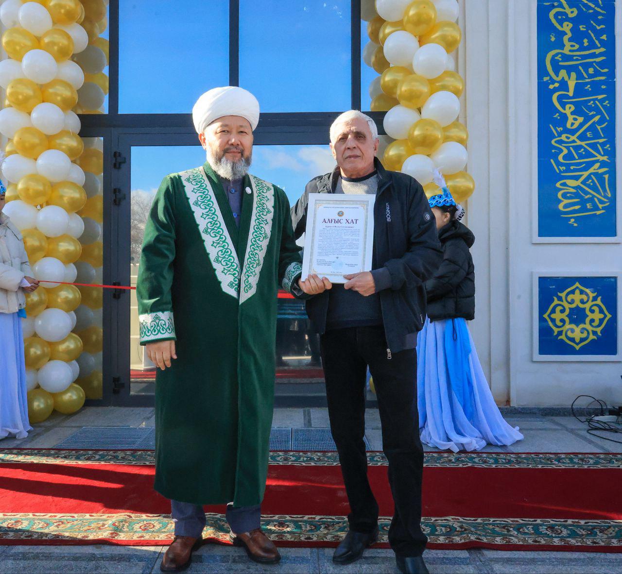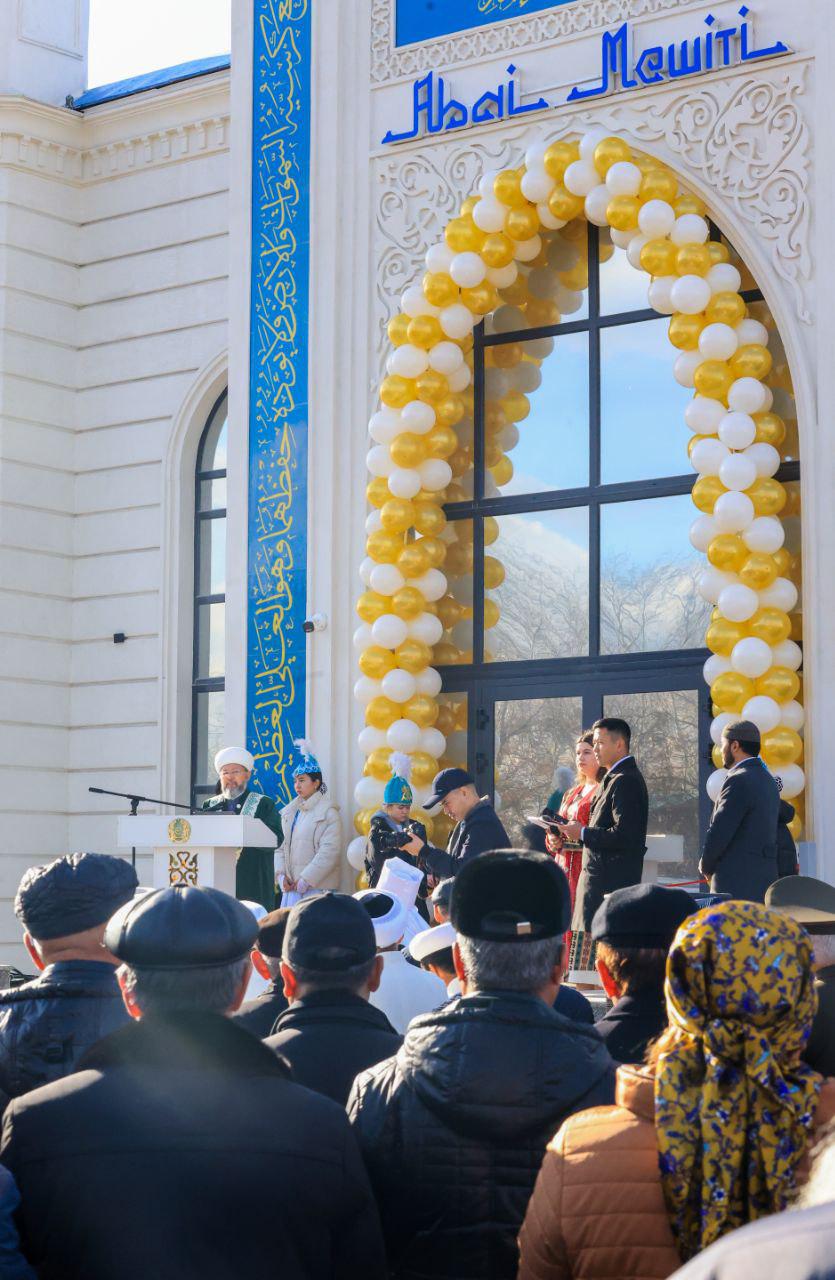 Салтанатты жиында Бас мүфти Наурызбай қажы Тағанұлы жамағатты жаңа мешіттің ашылуымен құттықтап, Исламдағы үзілмейтін сауаптың бірі – мешіт салу екенін атап өтті.