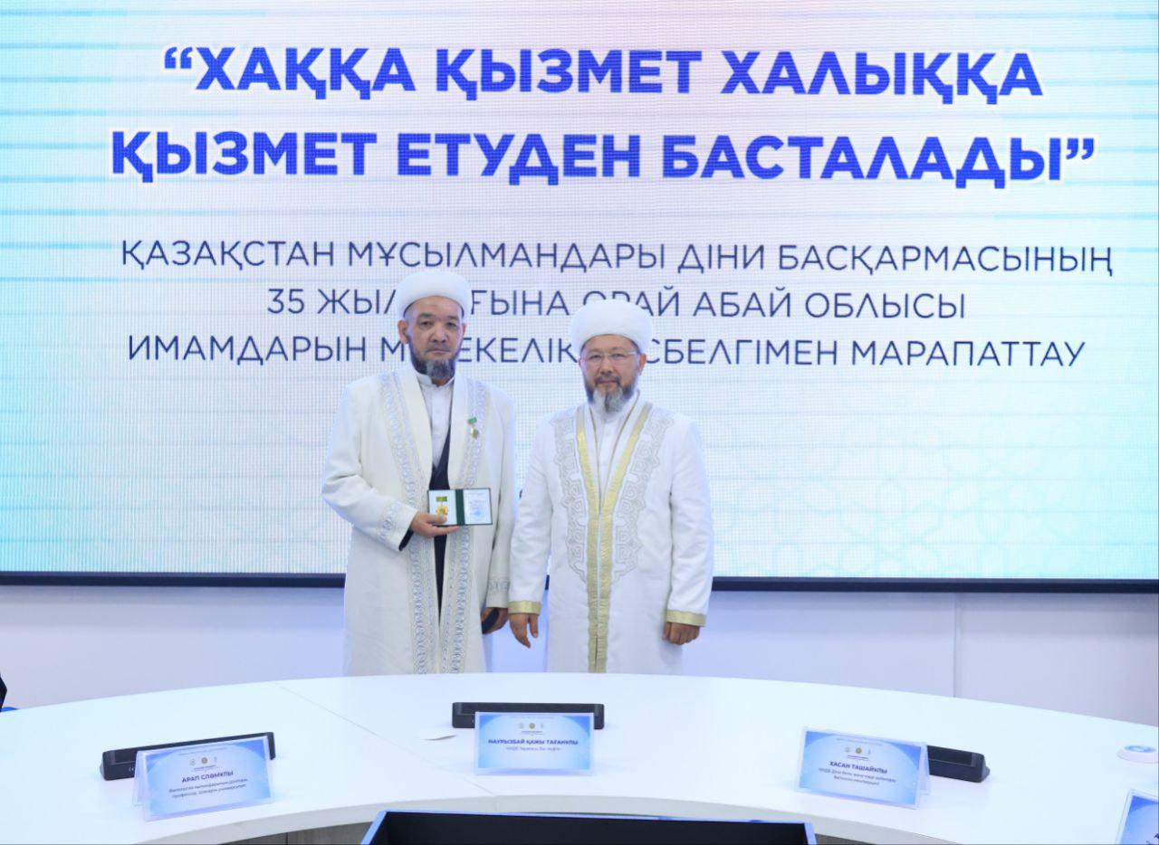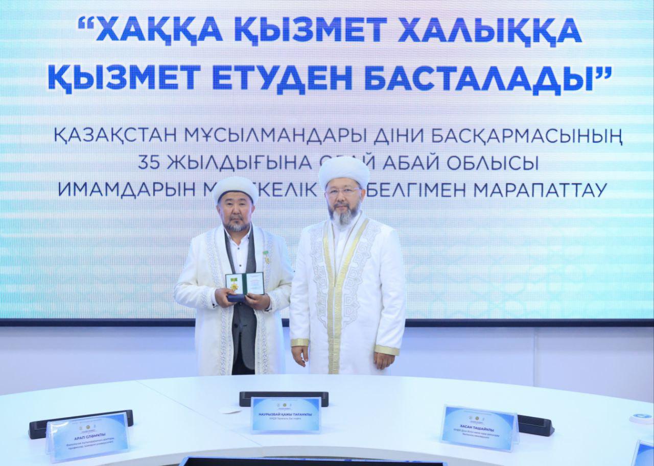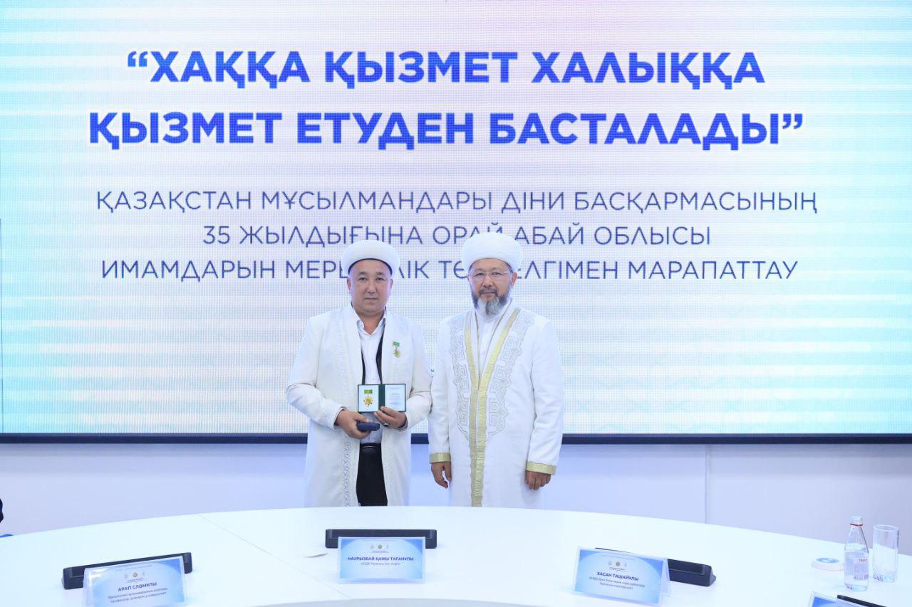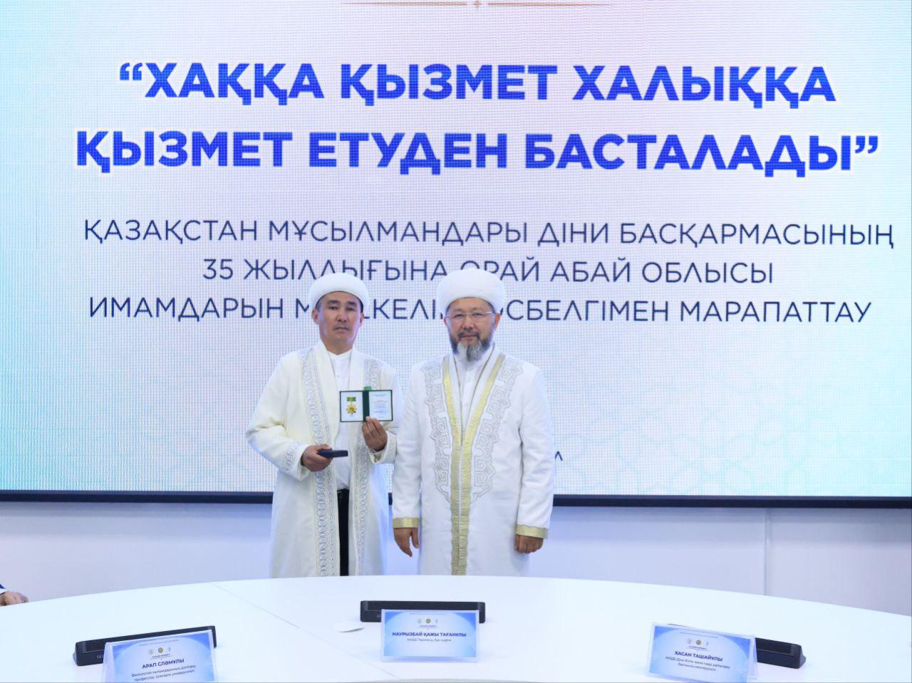 Абай облысына жұмыс сапары барысында Қазақстан мұсылмандары діни басқармасының төрағасы, Бас мүфти Наурызбай қажы Тағанұлы өңірдің бірқатар дін қызметкерлерін ҚМДБ-ның 35 жылдық мерейтойлық медалімен марапаттады.