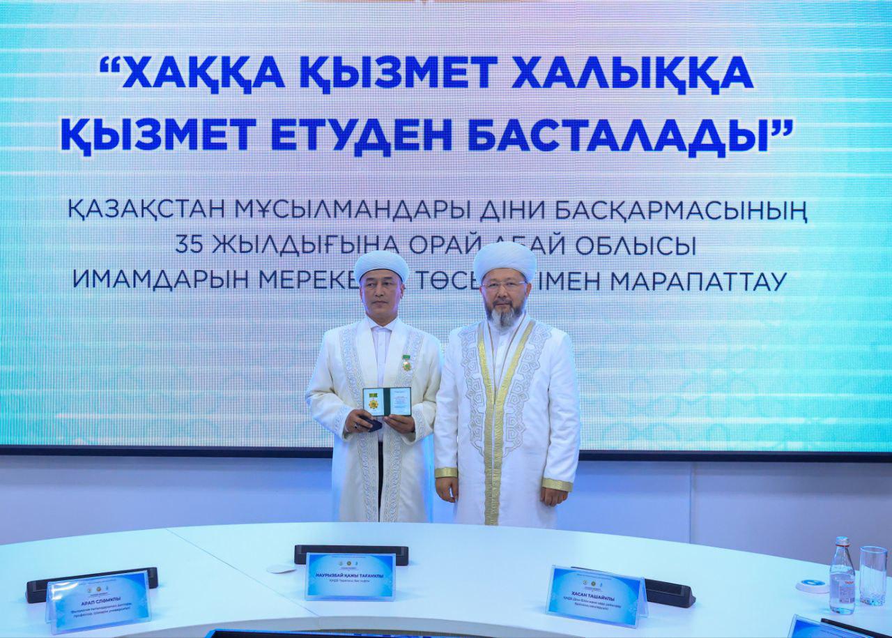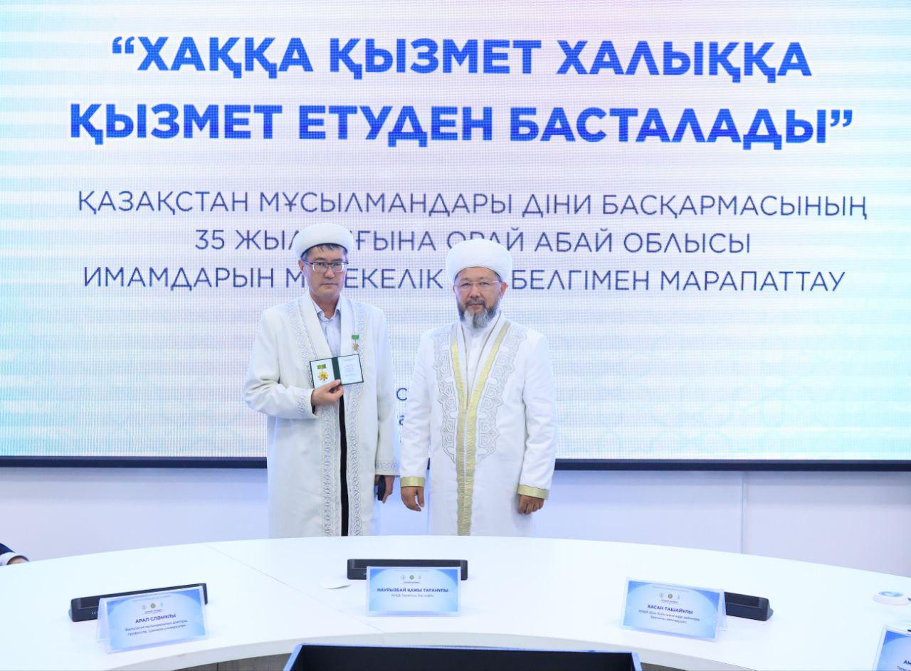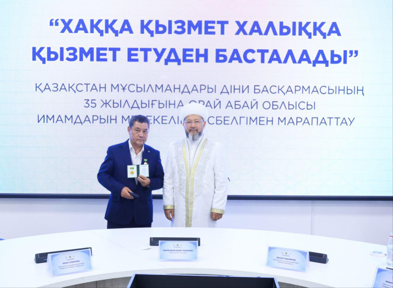 Аталған марапат – Діни басқарманың 35 жылдық мерейтойына орай, ел ішінде дін мен дәстүр сабақтастығын насихаттап, қоғамның рухани дамуына үлес қосып жүрген дін қызметкерлерінің еңбегін бағалау мақсатында табысталды.