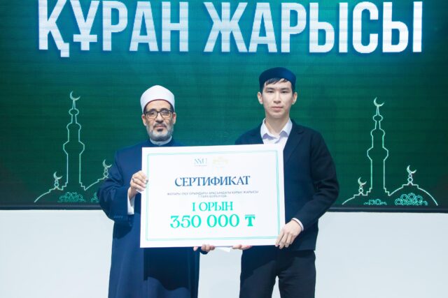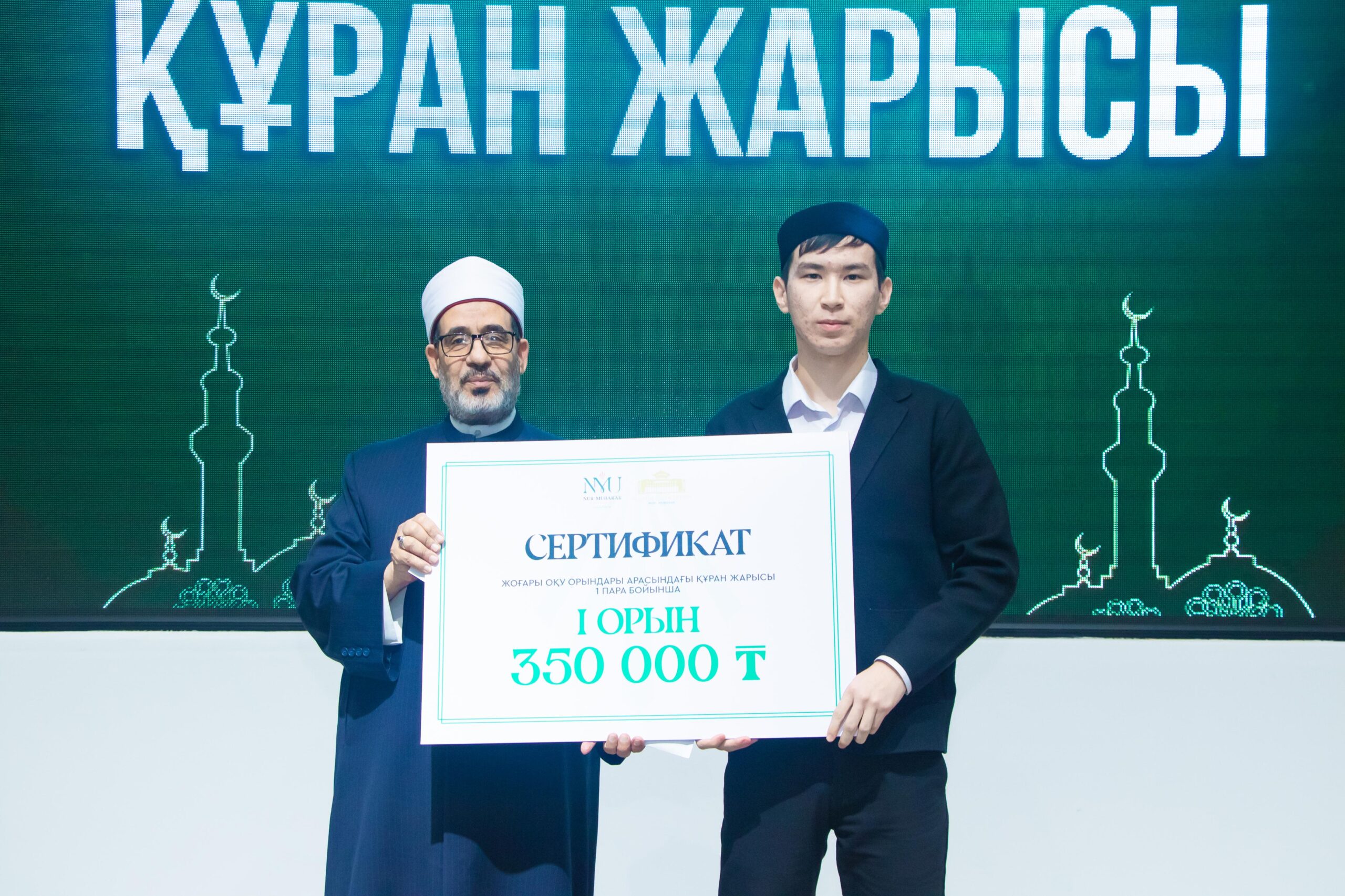 Нұр-Мүбарак Египет ислам мәдениеті университеті ұйымдастыруымен еліміздегі жоғарғы оқу орындарының студенттері арасында өткізілген республикалық Құран жарысында мешіт шәкірті жеңімпаз атанды.Бұл рухани Құран жарысына республика бойынша жүзден астам студент қатысып, өзара бақ сынасты. Бір пара мен бес пара аралығында Құран Кәрімді жатқа оқу бойынша өз білімдері мен қабілеттерін ортаға салды.