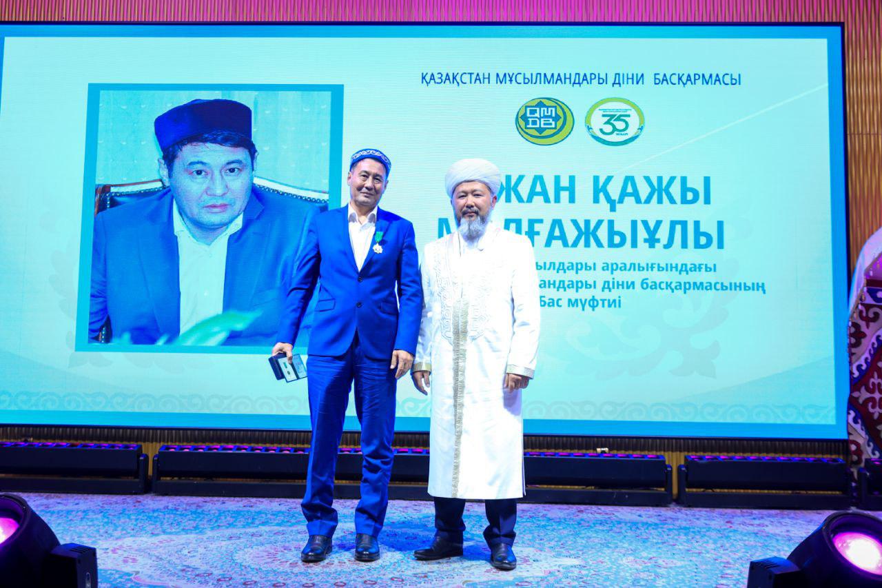 Алматыда өткен «Діни басқармаға – 35 жыл» атты мерейтойлық рухани кеш барысында ҚМДБ төрағасы, Бас мүфти Наурызбай қажы Тағанұлы ел руханиятының дамуына үлес қосқан бірқатар тұлғаларды арнайы марапаттармен құрметтеді.