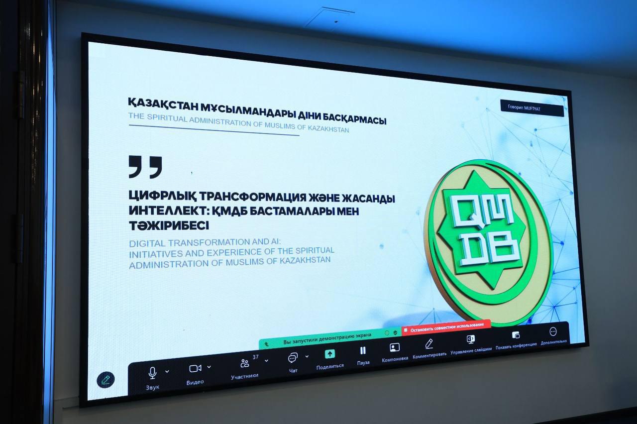 Онлайн басқосуда ҚМДБ Аппарат басшысы Ғылымбек Жәдігерұлы «Цифрлық трансформация және жасанды интеллект: ҚМДБ бастамалары мен тәжірибесі» тақырыбында баяндама жасап, Бас мүфти Наурызбай қажы Тағанұлы хазіреттің құттықтау лебізін жеткізді. Сондай-ақ, Діни басқарма жүзеге асырып жатқан цифрлық бағыттағы тың жобалар жөнінде ақпарат берді.