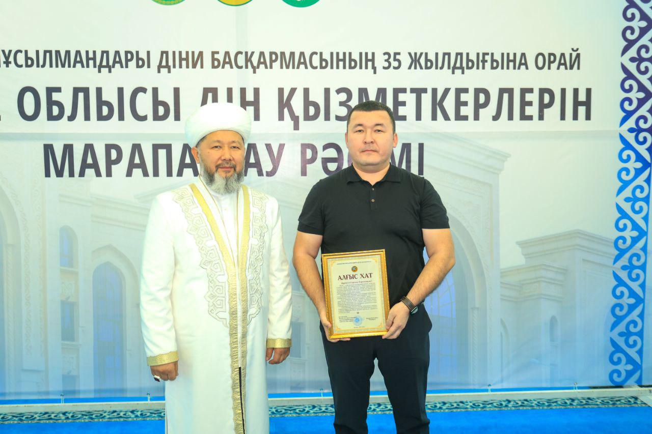 Сонымен қатар, ҚМДБ Төрағасы Ойыл аудандық мешітіне қызметтік көлік сыйлауда демеушілік көрсеткен ЖШС «Анвар» сауда орталығының Бас директоры, облыстық мәслихат депутаты Талғат Маратұлына, сондай-ақ Шалқар ауданында 12 балалы отбасыға баспана алып беріп, Темір аудандық «Досжан ишан» мешітіне көлік уақып еткен «Гарант Строй» ЖШС Бас директоры Серғазы Төреғалиұлына алғыс айтып, екеуін де ҚМДБ-ның арнайы алғыс хатымен марапаттады.