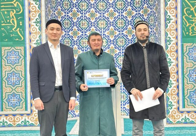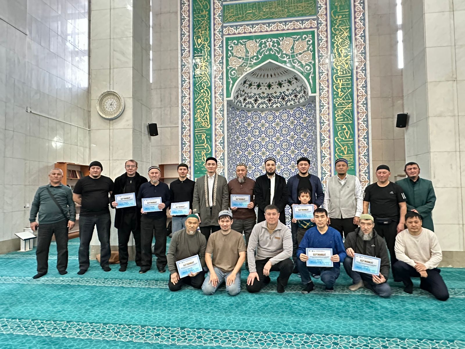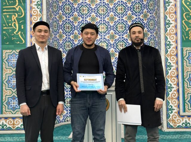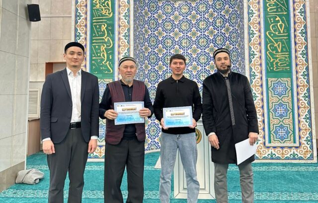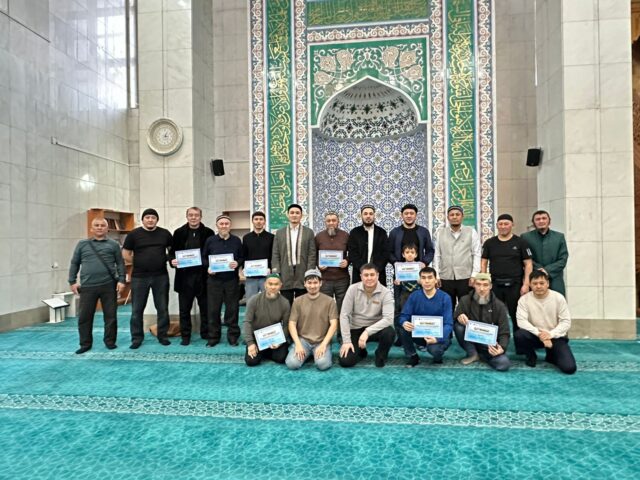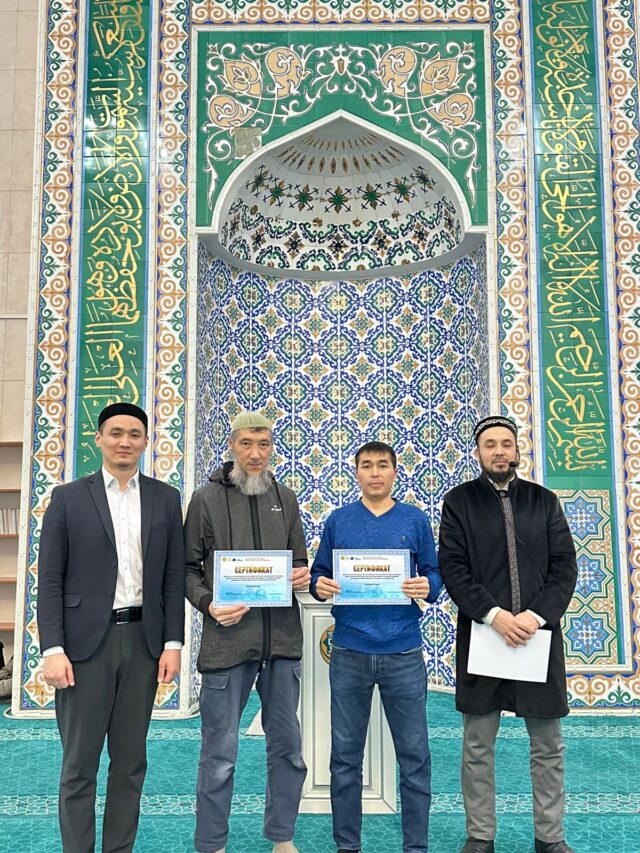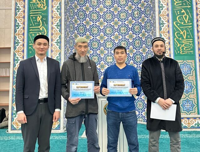 Имам Мұхаммед әл-Алауидің «Қуаныш қақпалары» кітабы желісімен өткен дәріске қатысқан мешіт жамағаты мен шәкірттеріне естелік сертификаттар табысталды.