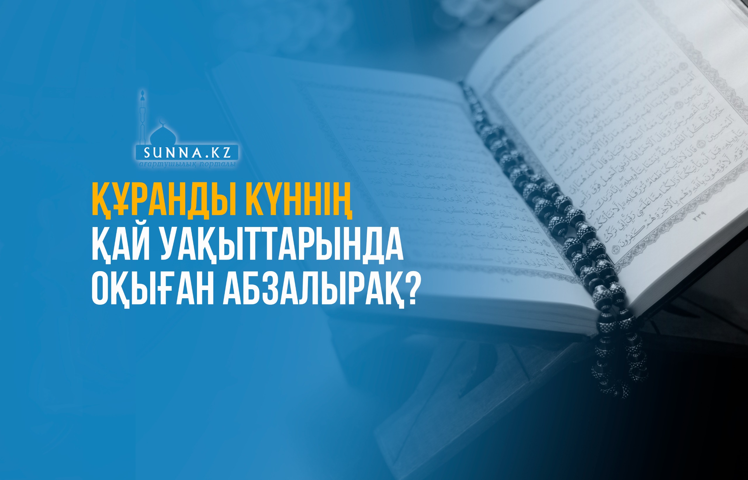 4. Күндізгі уақыттарда таң намазынан кейін оқыған артығырақ. Одан өзге уақыттарда оқи беруге болады, оның еш мәкруһтігі жоқ, тіпті намаз оқуға болмайтын уақыттардың өзінде Құран оқыла береді.