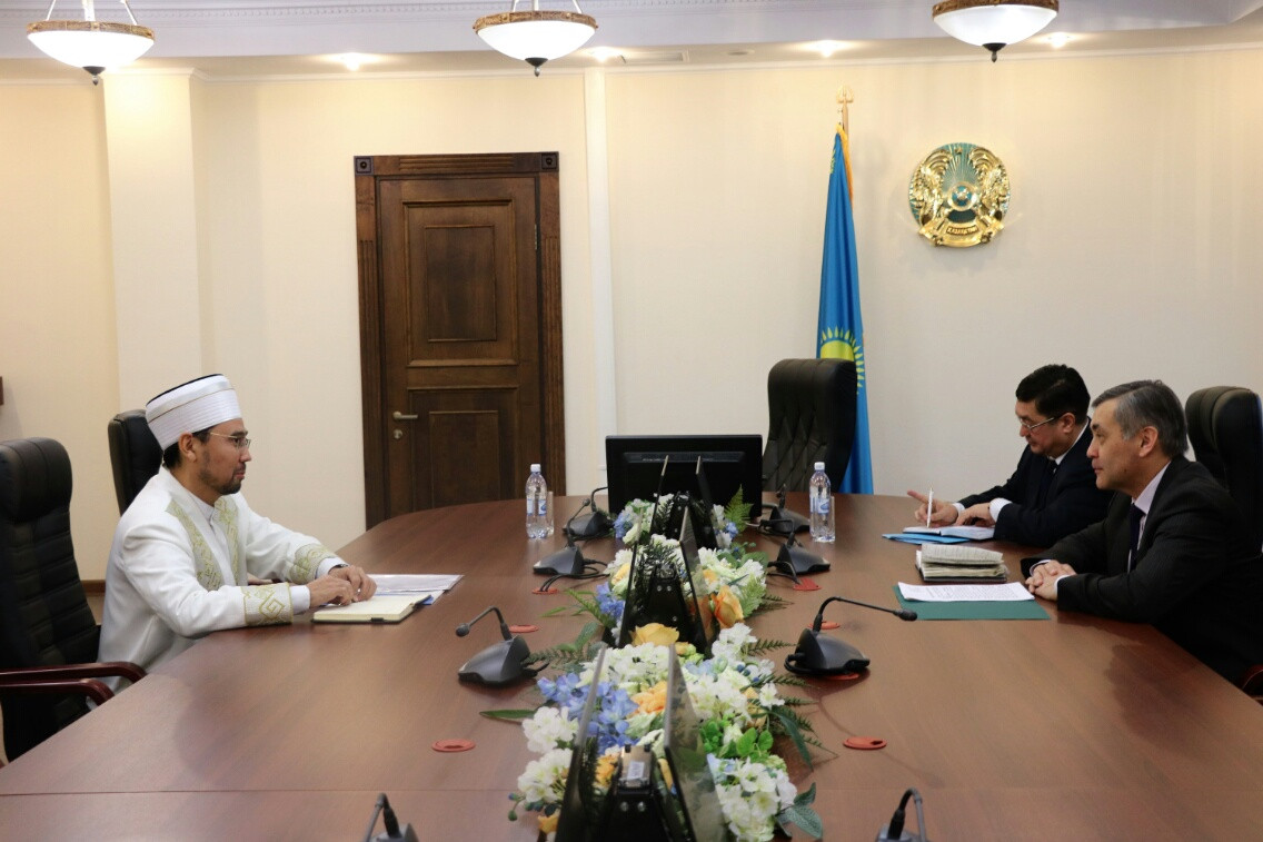 Бүгін ҚР Дін істері және азаматтық қоғам министрі Нұрлан Ермекбаев Қазақстан мұсылмандары діни басқармасының төрағасы, Бас мүфти Серікбай қажы Оразбен кездесу өткізді.