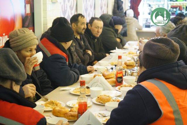 «Оң қолыңмен бергеніңді сол қолың көрмесін» дейтін ұлттың ұрпағымыз. «Астана – мейірімді қала» жоба аясында Астана қаласы «Әзірет Сұлтан» мешітінің бастамасымен «Сәдуақас қажы Ғылмани» мешітінің имамдары мен қызметкерлері Арқаның үскірік желі мен аязында өз жұмыстарын үзіліссіз атқарып жүр. Атап айтар болсақ, Ақпанның 5 жұлдызында қоғамдық жұмысшыларға ыстақ тағаммен сусындар берілді. Бүгін, Ажар сауда орталығының халал асханасында 38 қоғамдық жұмысшыларға дастархан жайылып аязды күнде азда болса жылу силауға тырысты. Сауда орталығына келушілер қайырымдылық шараның куәсі болып, алдағы қайрымдылық шараларға өз үлестерін қосақысы келетіндіктерін жеткізді. Атқарылған акция аясында Астана тұрғындарына тегін такси қызметі ұйымдастырылып, көше тазалаушылар мен құрылысшыларға ыстық шәй мен тамақ ұсыну алдағы уақытта-да жалғасын табады.