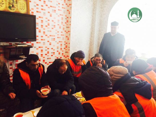 Осы орайда, «Сәдуақас қажы Ғылмани» мешіт имамдары намазға жиылған жамағатты жақсылыққа үлес қосуға шақырып, ауа райының қолайсыздығына байланысты көмекке мұқтаж жандарға қамқорлық таныту сауапты іс екендігі түсіндіріу үстінде.