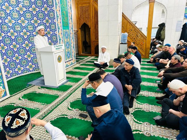 Жиналған жамағатқа мешітіміздің бас имамы Руслан Байзақов Ораза айттың дініміз бен ұлттық мәдениетіміздегі қадір-қасиеті мен айт күні атқарылар салихалы амалдар жайлы мағлұмат беріп, жиналған жамағатты ұлық мейраммен құттықтады.